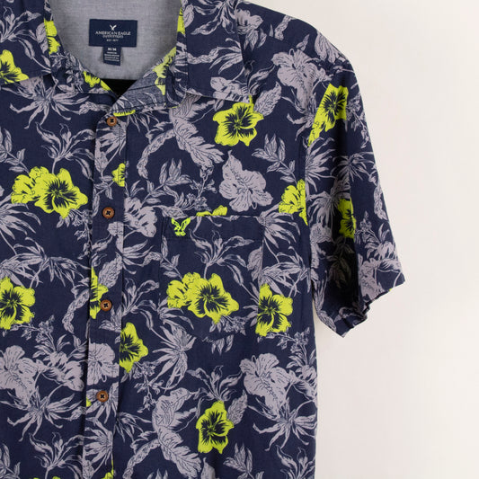 Camisa hawaiana azul marino (M) American Eagle